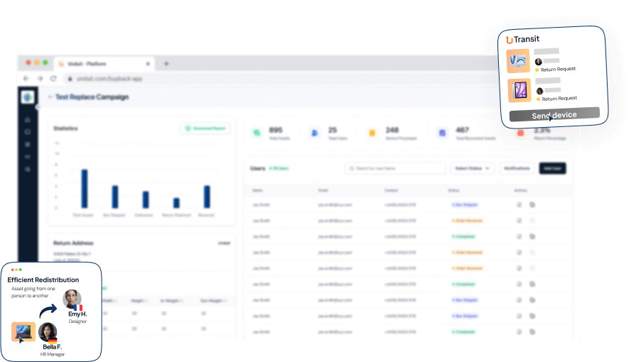 Let Unduit manage your company’s IT inventory, store assets in our secure warehouse and never lose an asset with real-time view and tracking capabilities, ensuring your assets are secure and always accessible.